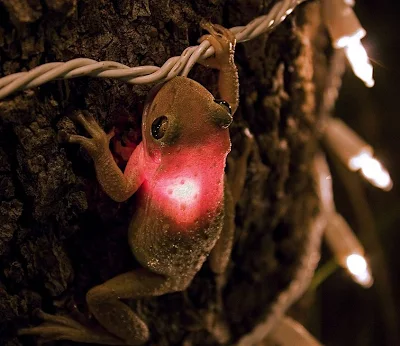 Apparently, after a few minutes he slipped the bulb out and hopped off just fine,