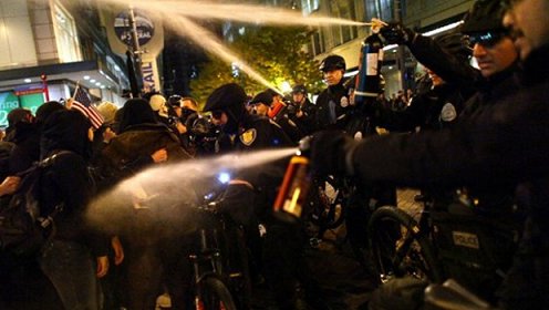 Seattle Police officers deploy pepper spray