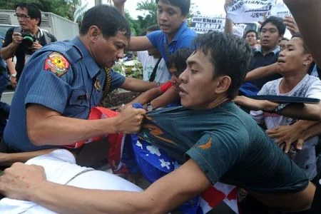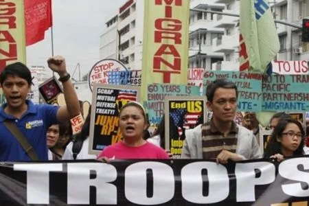 Protesters in the Philippines urge the annulment of the Visiting Forces Agreement. Under the military pact, US troops are given legal safeguards when they visit the Philippines.