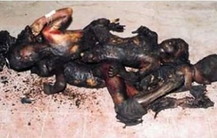 ReplyDeleteis actually an image of the Muslims who were killed in the Gujarat riot in India. One of the children bears marks on the neck from being hanged.