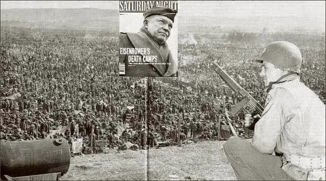 Eisenhower's death camp in which at least 50 000 Ger,am soldiers who had surrendered were placed with no food, tents, latrines, nothing. Just left to die of disease and exposure.