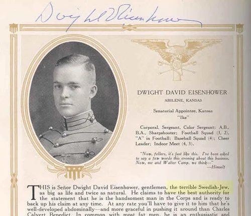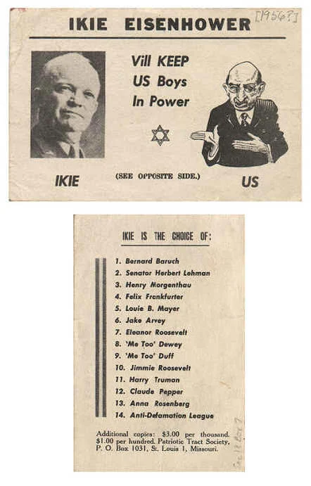 How many people knew that Eisenhower was Jewish? I imagine this fact was not exactly broadcast to the world at large, even if there was evidence such as this in the open.