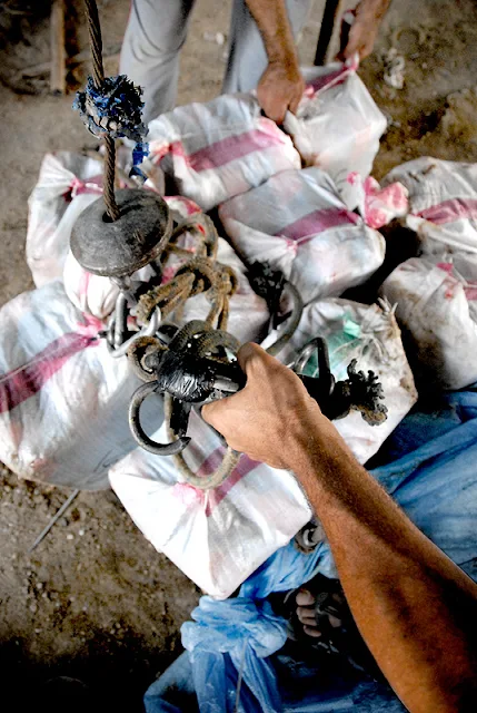 H, Gaza Strip ~ The first things you notice are the trucks, entering Rafah’s dusty main thoroughfare from small side streets, flatbeds fully loaded and covered. Then there are the young boys packed three to a motorbike, darting heedlessly in between the rumbling behemoths, clutching shovels. As you get closer, you see the enormous mounds of earth and rubble, some 10 feet high and more, set amid acres of makeshift canopies, tents and metal garages, which serve as loading docks for Rafah’s booming tunnel trade.