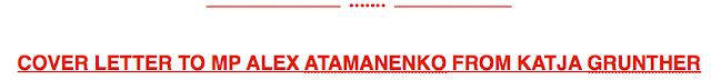 cover letter sent to her MP, Alex Atamanenko containing a plethora of details