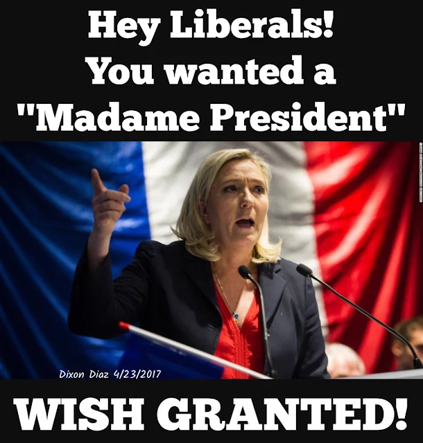 No! Not a media bias in favour of the Rothschild poppet/puppet! "The Enigma", "The Revolutions", "The Only Face of History" and then there is the chestless Putin wannabe, and so it goes. Meanwhile, every chance, Marianne is painted as Nazi, negative, etc etc etc. America has seen all this before. This election in France is crucial. Where once national elections were observed from afar, in today's world of domino politics, this matters in the delicate (im)balance we tiptoe so delicately through. Never was this so obvious as in the last American election; the reverberations of that epic achievement of conservatism are still rumbling and shaking the policies around us on an international scale.