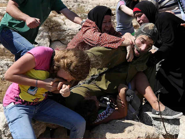 She faces 7 years in prison. Ahed Tamimi is no stranger to publicity. We met her several years ago chowing down on an Israeli soldier's hand when her brother with the broken arm (beneath the soldier) was being hijacked by the IDF.