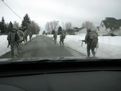 “My son in law today saw about 20 army guys with full combat gear walking down the street in Hayden, Idaho. He took pictures and asked them what they were doing. ‘They said they were just training.”