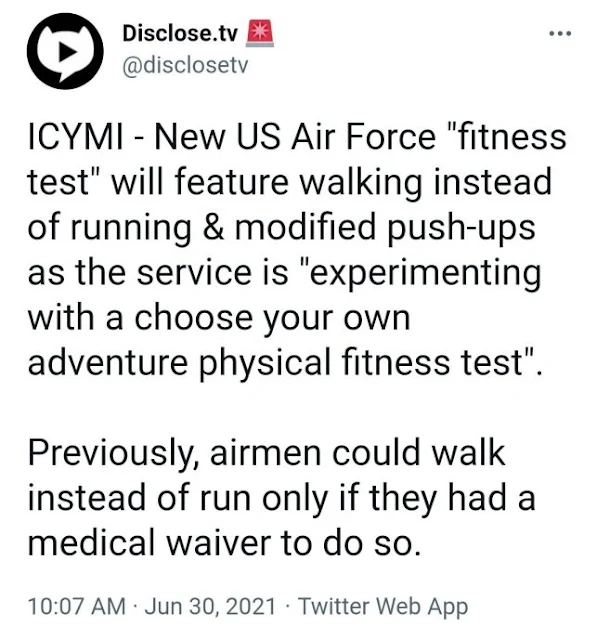 It is hard to run in heels. The military is changing its image and attracting fewer athletic types. It is actively purging the conservatives within the ranks.