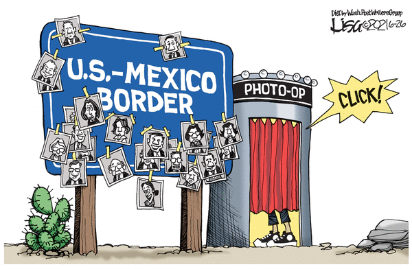 Cackling Kamala Harris going to a border (but not the problematic border) to address illegal immigration without ever mentioning border security? BANG ~ shwoop! CLANG!