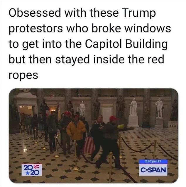 Indeed whether or not Trump “incited” anything is moot, because there was no violence. Disregard the reports of chemical weapons, pipe bombs or IEDs ~ none of which ever appeared. None of the “rioters” are as yet shown to have hurt anyone.