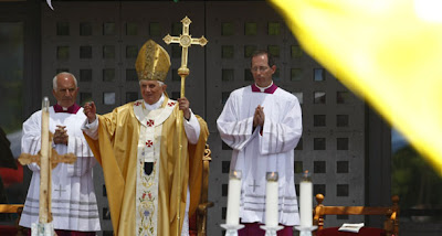 Pope Benedict XVI leads a mass in Manger Square