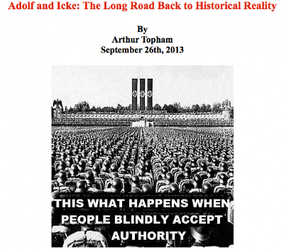 “Exposing the evil of Nazism. Absolutely.” ~ David Icke, in an email to Radical Press publisher Arthur Topham, Sept. 24, 2013