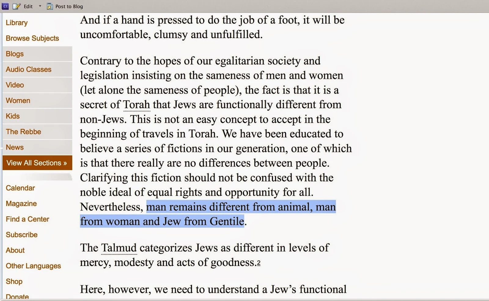 Many of the excerpts presented are offensive to Jews and Gentiles alike. They are from writings of another time, with harsh and offensive punishments in all societies. The contemporary opinions and declarations of an extremist Orthodox Jewish leader are NOT universally accepted, just as the edicts of ISIS followers are not accepted by the majority of Muslims. Extreme and fringe ideas are just that, and should not be the basis of judging an entire population.