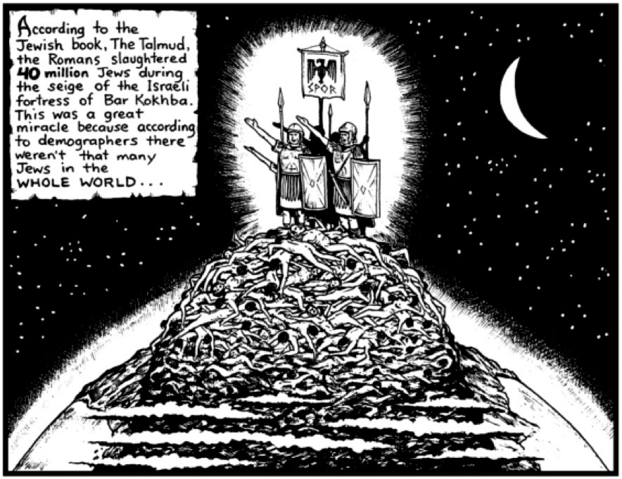 It must be remembered that this event ~ Rome’s destruction of Judea and the dispersal/humiliation of the Jews ~ is credited as the causal source of the constantly-cited ‘2,000 years of persecution’ which finally culminated in the ‘persecution of all persecutions’ ~ the misnamed ‘Holocaust’ and its claim of 6,000,000 ‘blessed Judaic souls’ being incinerated.
