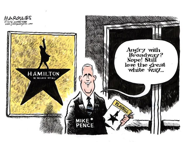 Artist's comment: It's hardly shocking that Broadway is something of a liberal cesspool, but those on The Great White (Privileged) Way hit new depths of dipshittery on Friday night when VP-elect Mike Pence attended a performance of "Hamilton."