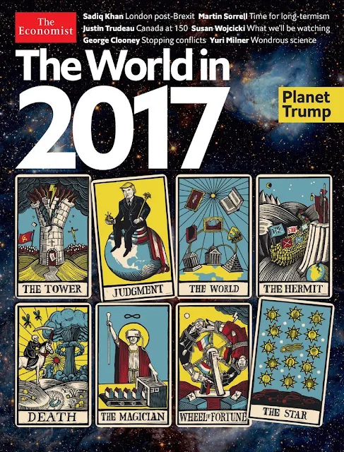 This is a rather fascinating alteration of the traditional Tarot which graces the cover of The Economist. Enlarge and compare for yourself.
