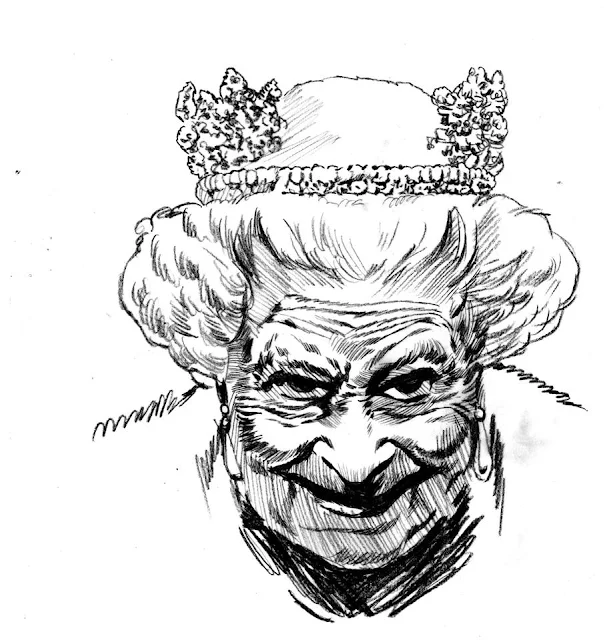A devilish portrait of Elizabeth II.