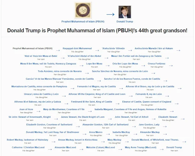 You can enlarge the above and your own research on this one. I am just posting it for you. But Trump, being a descendant of the Prophet of Islam (PBUH) is a rather astonishing factoid.