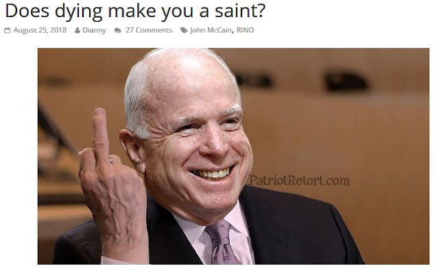 Nothing in the world is so great as the loss of John McCain ~ according to the JMSM. I would say this is an effort to stick it to Trump, knowing how much so many of us detested him. Every cartoonist out there is outdoing himself to let us know what a great patriot we lost. Further below you will find the other side of that particular debate for this rather deplorable individual. The Snarky Conservative, aka Dixon Diaz, nailed the situation beautifully.