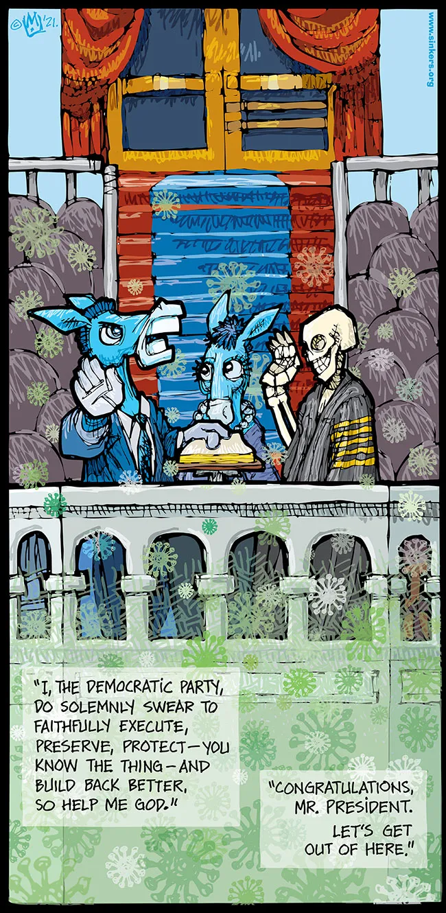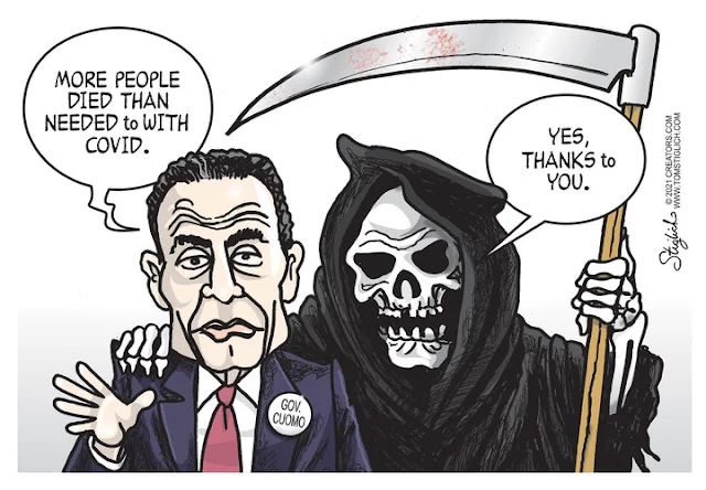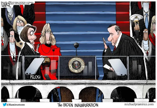 The canonization of St. Biden, Savior of all Mankind ~ Past, Present and Future ~ has resulted in manifold miracles, most especially the birth of a kinder, gentler, more positive media and the cure for that nasty old virus. So interesting that the last President was painted with horns and/or fecal matter upon his Inauguration. Cartoons were so filthy that editors had to tell their liberal artists to clean up their act. They gladly resumed fecal humor during the last few weeks of Trump's Presidency. Thanks to this gentler kinder America, the seas have parted and businesses on their last gasp have a chance of survival! Yes, Biden ... well anyhow. Say no more.
