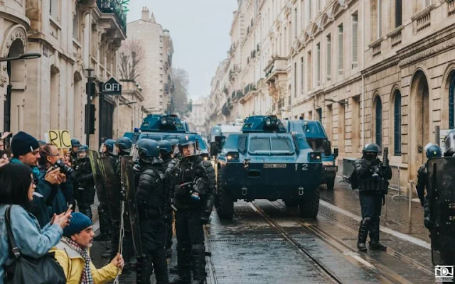 Alexandre Langlois, General Secretary of the Police Syndicate, VIGI, has accused Macron’s government of stoking confrontation and of favouring repression over dialogue. In a series of public interviews, Langlois blames the hierarchy within the Interior Ministry for the “manipulation” of the police forces already hugely under pressure and experiencing a climbing suicide rate since Macron’s rise to power in France. According to Langlois, the “hierarchy” direct the police working during the marches from remote control centers which disable the police’s ability to analyse events on the ground and avoid dangerous confrontation or provocation. Langlois demonstrates that this system has led to situations that have increased pressure on both the police and the GJs.