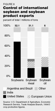 According to spokesmen for the U.S. Department of Agriculture, as well as private industry, the same six companies that dominate the international grain trade also dominate the international trade in soybeans and by-products.