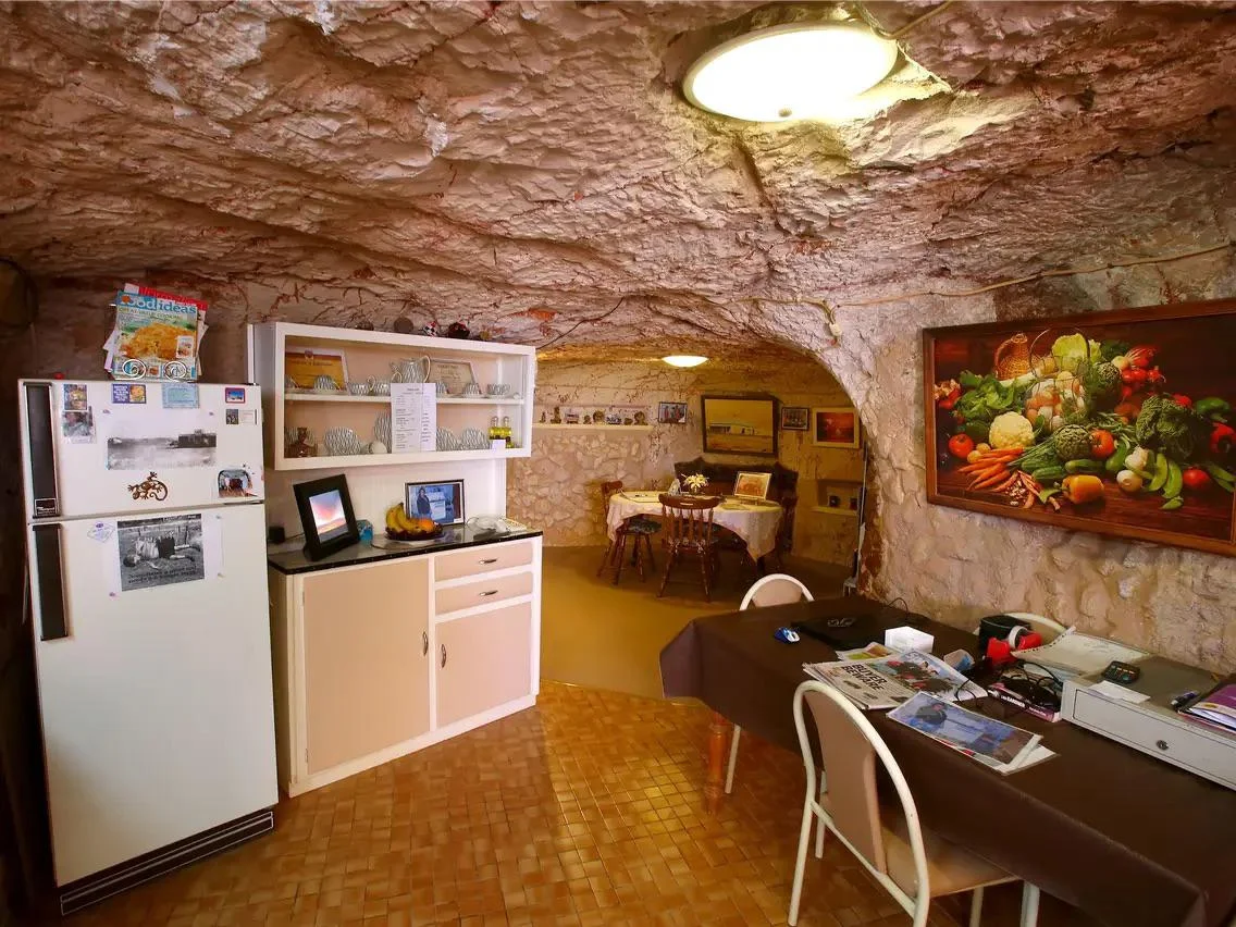 Interior of an underground Australian cave home in the desert.