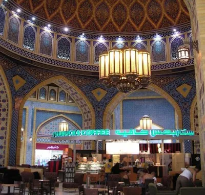 A starbucks in the Ibn Battuta Mall, Dubai. But then, Dubai is there for the money and has long since sold itself to the tourists. But what a ceiling!