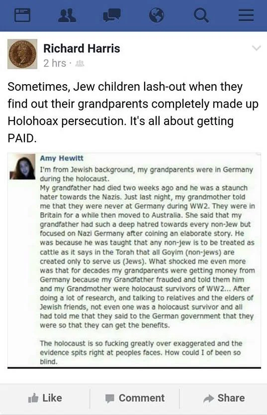The cruel canard ‘anti-Semitic’ does not apply for many reasons, not the least of which is the simple fact that the slanderous word itself is derived from language games for purposes of propaganda and in real world context has no validity. ~ Tom Valentine