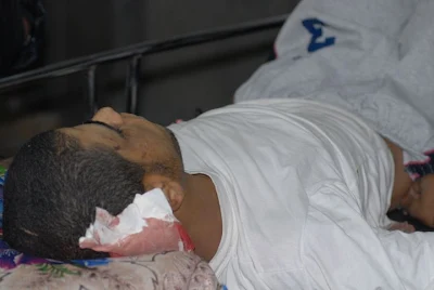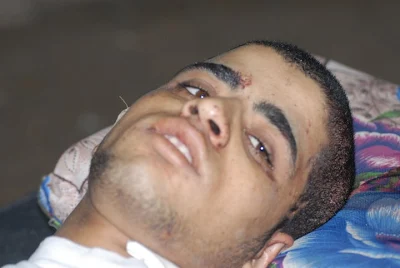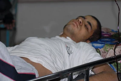 In a powerful series of photos by Palestinian Peace worker/journalist/photographer, Samah Habeeb, taken in one of the hospital emergency rooms, I found this series of the passing of a young martyr. As I examined at the shots, I realized that Sameh had actually filmed the young man's last moments of life ~ captured the moment his spirit flew free from his fatally injured flesh.