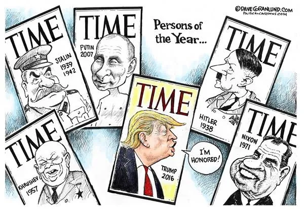 This week I spend time on Mr. Trump and his tweeting, the ridiculous Hillary recount, Canada and our manly Prime Minister Trudeau, Standing Rock, Castro, the Democrats, liberals in general, Hillary, the EU; just enjoy what you find, feel free to share, and never hesitate to say hello in the comment section. The Time Magazine cover of Mr. Trump as "Man of the Year" comes complete with a lot of garbage and the award should be taken at face value.